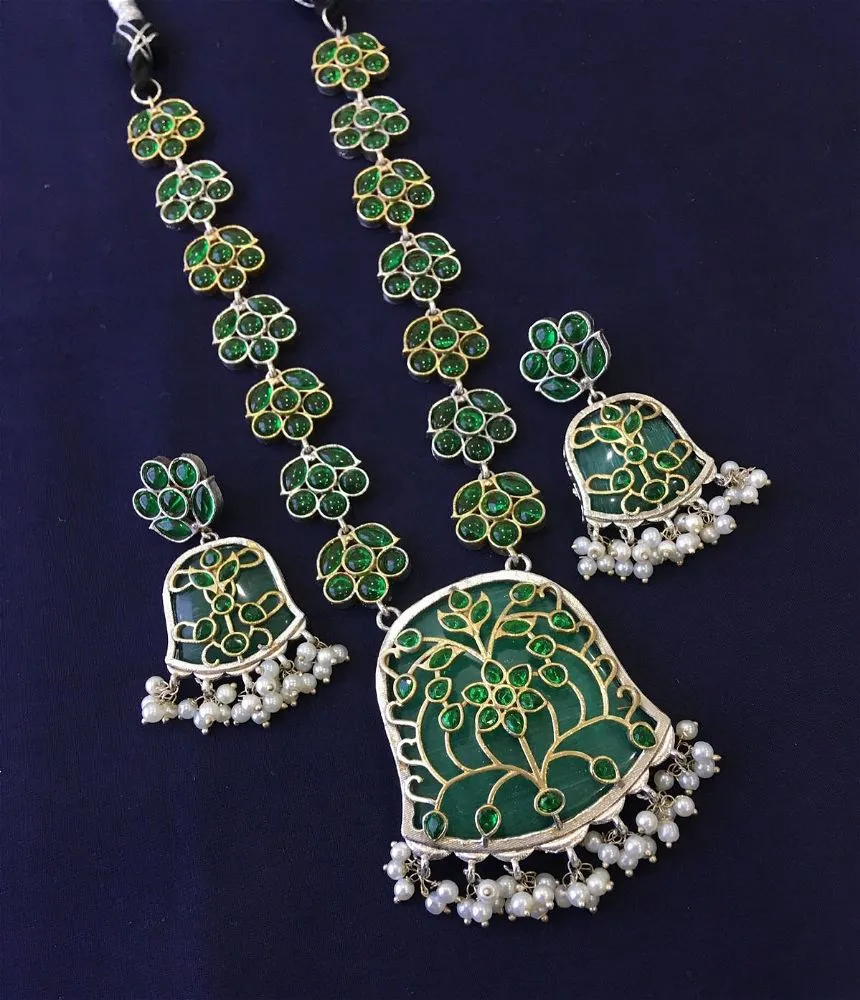 A striking fusion of traditional Inkari artistry and contemporary design, this green gemstone necklace makes a bold spiritual statement. The hand-knotted silk cord features alternating beads of vibrant green aventurine (for prosperity) and matte gold-finish metal spacers, centered by a carved Inkari symbol pendant in jade or green onyx.